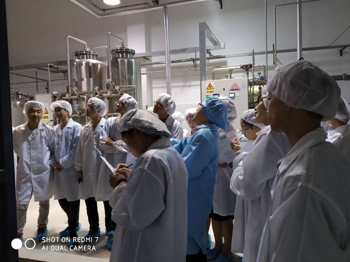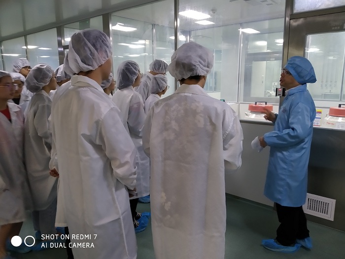 2019年4月19日,暨南大學藥學院孫晗笑教授和莫雪梅老師帶領2016級生物制藥班一行20余人來到我司參觀見習。